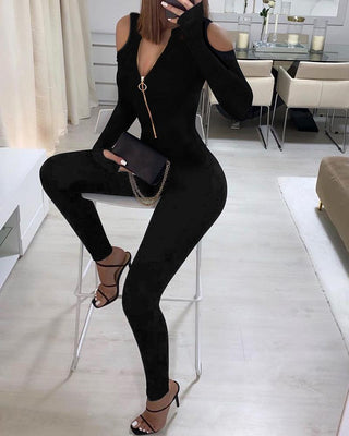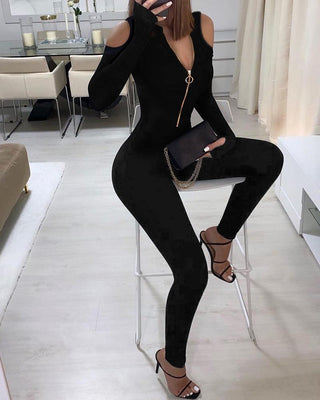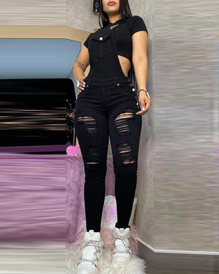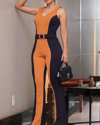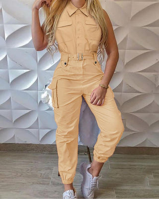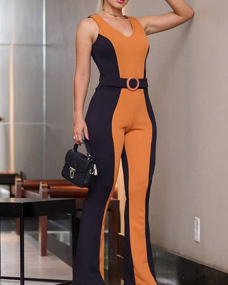 Combinaison Casual en Denim à Col en V et à Ceinture