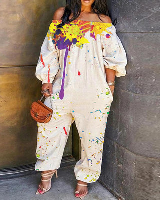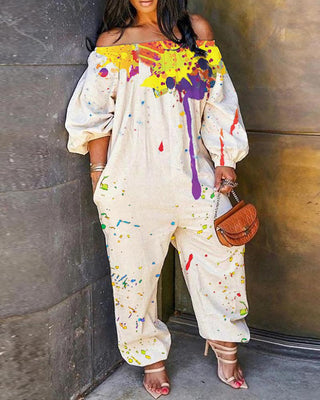 Combinaison à manches lanterne à épaules dénudées et imprimé éclaboussures d'encre