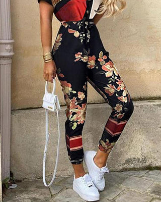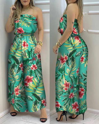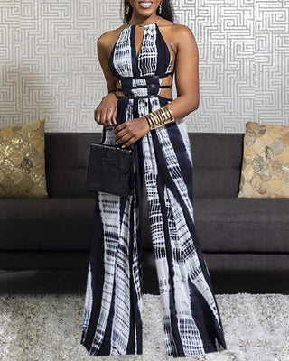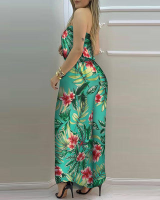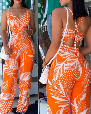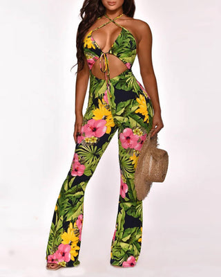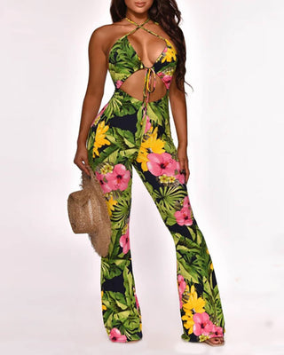 Combinaison bootcut à découpes et dos nu à imprimé tropical