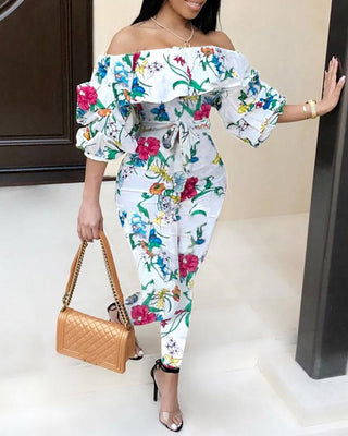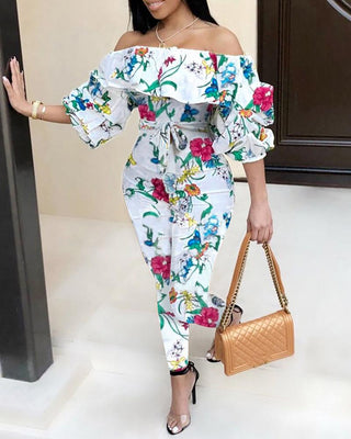 Combinaison à manches cloche et imprimé floral à épaules dénudées