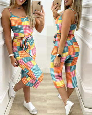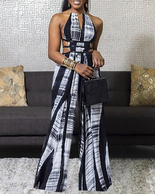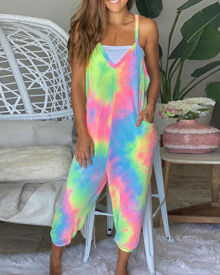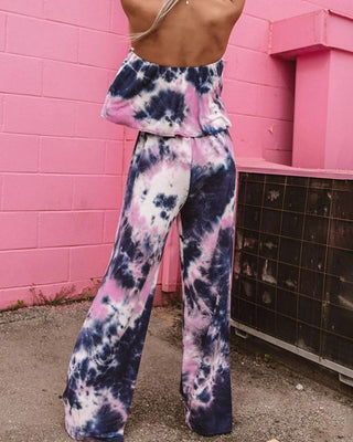 Combinaison à bretelles spaghetti à imprimé tie-dye et col en V à jambe large