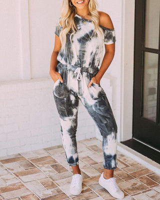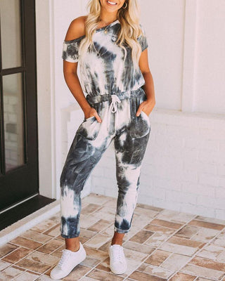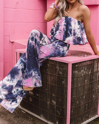 Combinaison à épaules dénudées et manches lanterne à imprimé tie-dye
