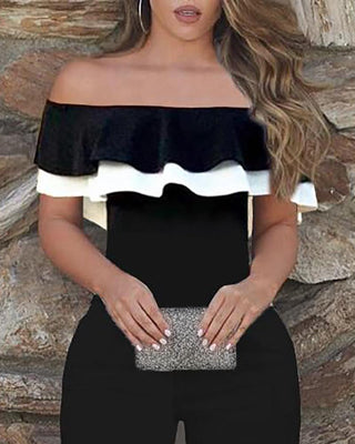 Combinaison à jambe large à blocs de couleurs à imprimé Polkadot