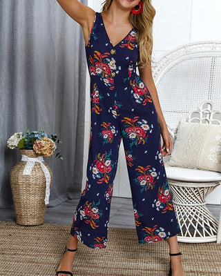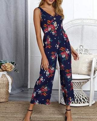 Combinaison à encolure en V sans manches à imprimé floral éclaboussé d'encre