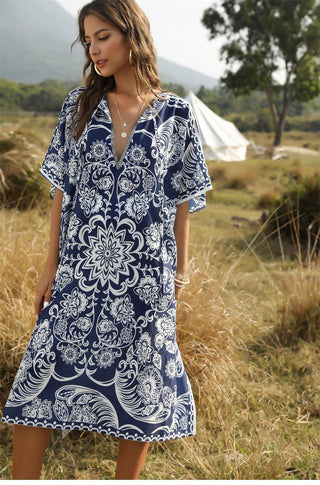 Robe longue à manches longues et imprimé vintage avec ceinture