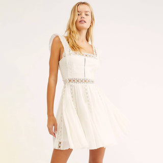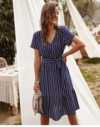 Robe imprimée marguerite à bretelles spaghetti et détail noué